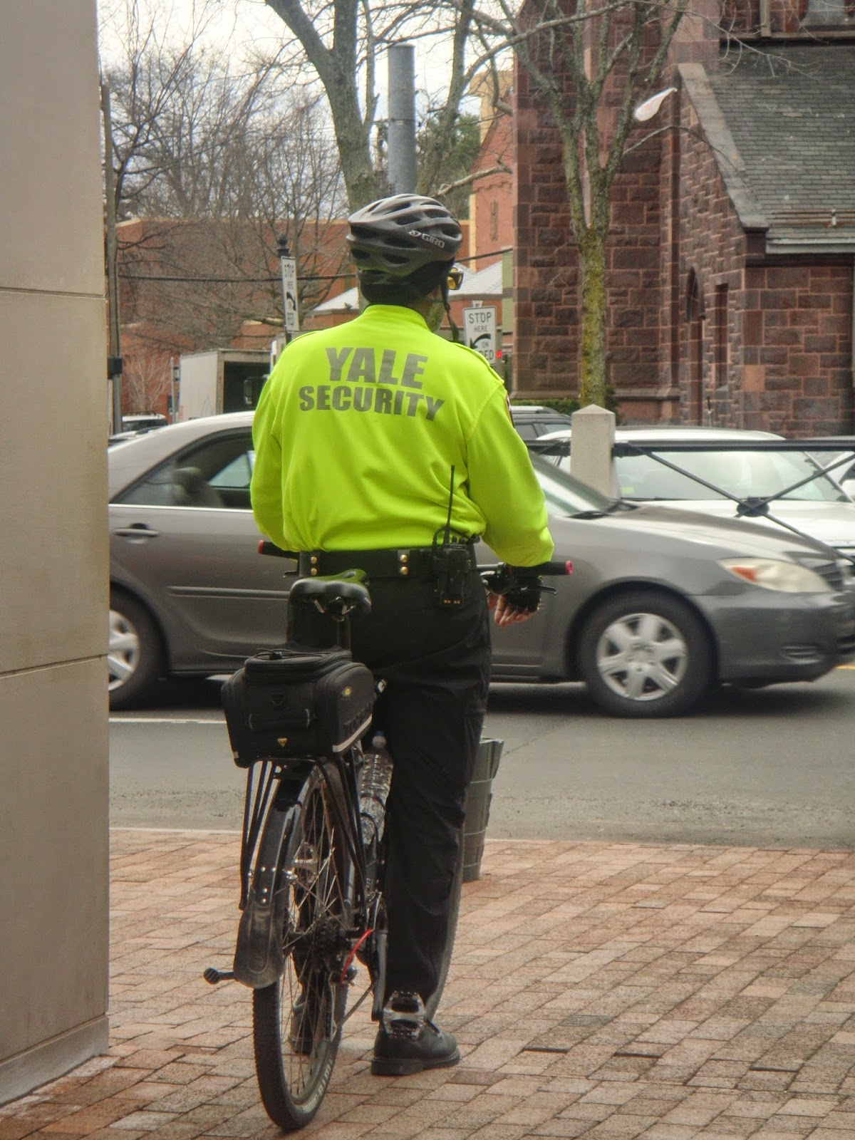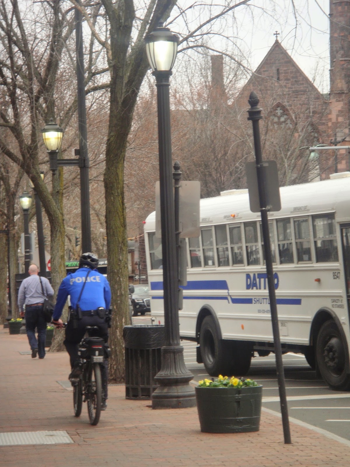 Después de comer Diego se ha marchado enseguida a la universidad y yo me he quedado bastante tiempo leyendo en casa.Como una hora antes de que saliese Diego, me he ido a dar una vuelta y a seguir descubriendo la ciudad. Hay mucha seguridad en las calles, tanto la policía de la ciudad, que ya ha sacado sus bicicletas, jejejeje, como la propia agencia de seguridad de la Universidad de Yale,