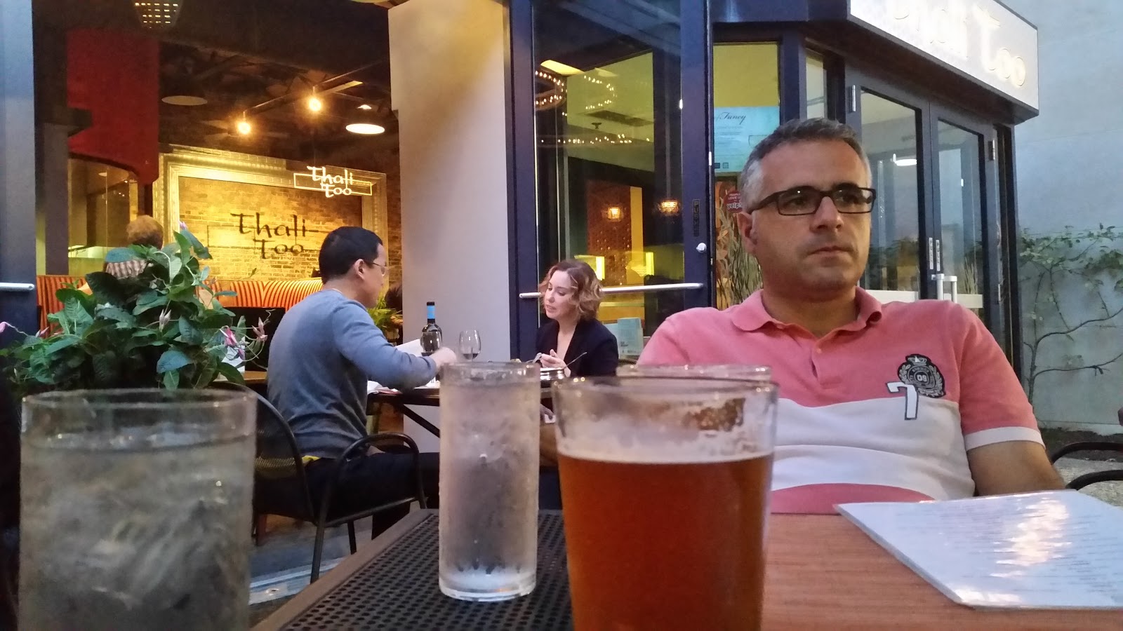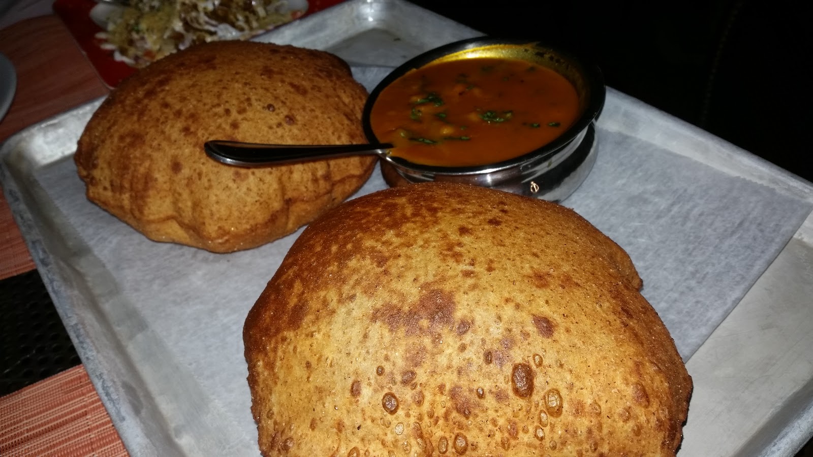 Para cenar hemos elegido un sitio que tenemos bastante cerca de nuestra casa, un restaurante de comida india vegetariana que se llama Thali Too. Cuando nos han dado la carta, la verdad es que no sabíamos muy bien qué pedir, no hemos ido a muchos restaurantes indios en nuestra vida y la verdad es que la denominación de algunos platos no nos es muy familiar, así que hemos tenido que utilizar una técnica infalible, decirle al camarero cómo se llamaba un plato que tenían en la mesa de al lado y que nos había resultado apetecible, como una especie de bollo de pan inflado con una salsa para mojarlo. Una vez superado eso, nos hemos atrevido con un arroz basmati con verduras y algo que si nos sonaba, unas samosas, que son como una especie de empanadillas rellenas de vegetales.