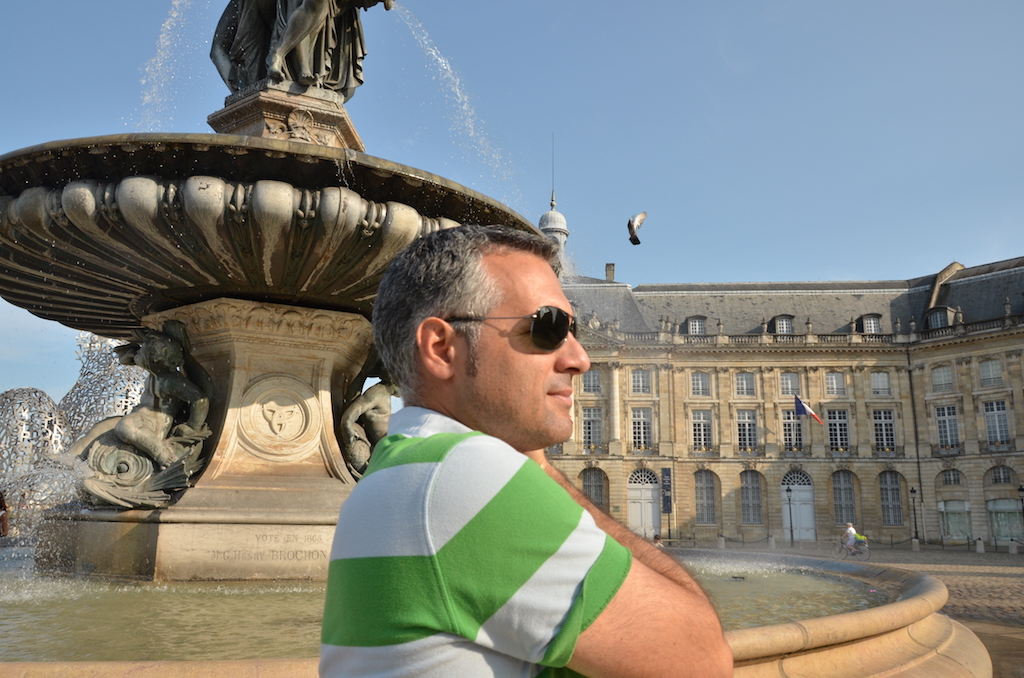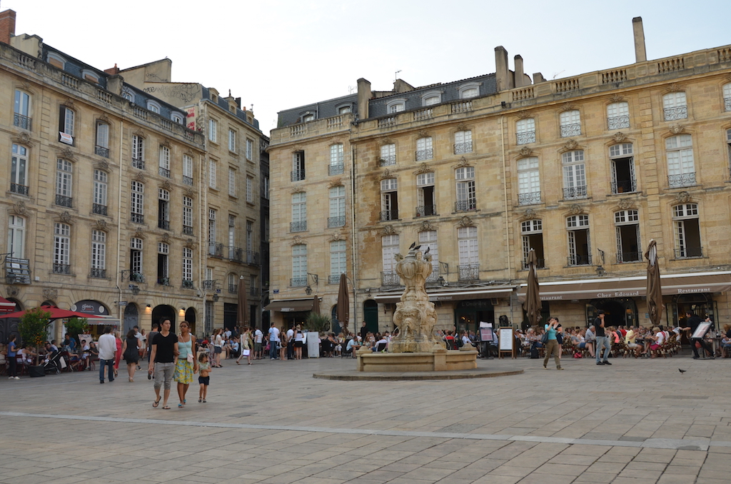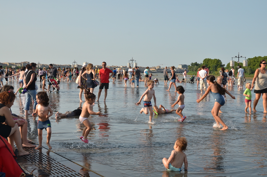 Una calurosa tarde de julio, el espejo del agua estaba lleno de gente refrescándose, niños jugando, y mucha gente queriendo llevarse una imagen del lugar más fotografiado de Burdeos.