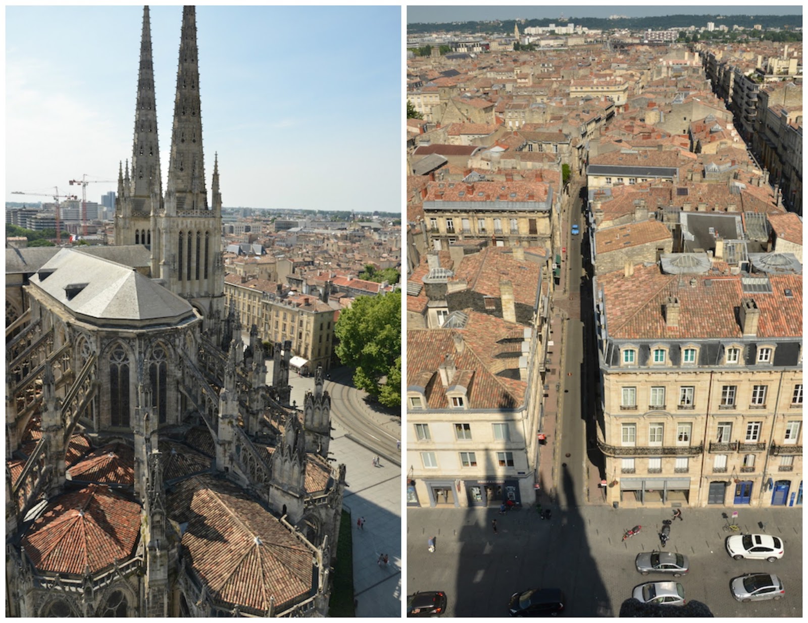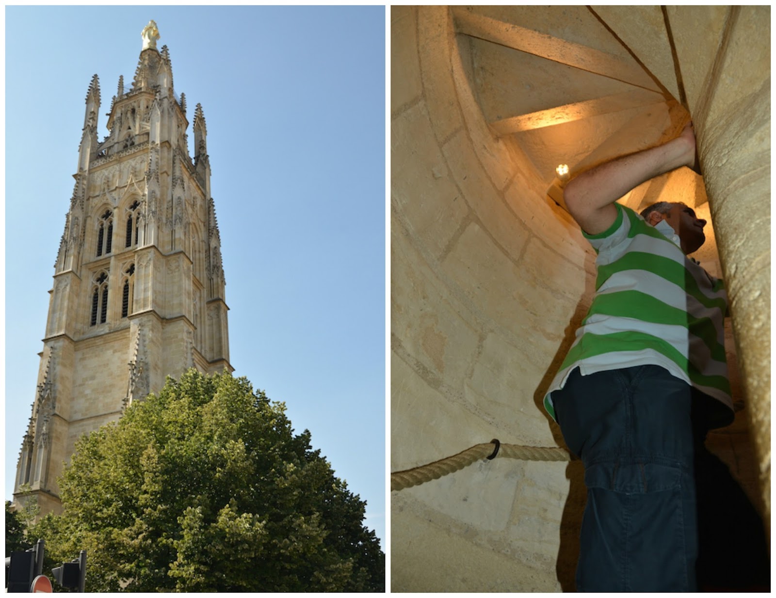 La torre campanario conocida como Pey-Berland está separada unos metros del edificio principal, se puede acceder y tras subir los 231 peldaños por una escalera de caracol, se sale a un mirador desde el que se obtienen las mejores vistas de la ciudad, no sólo porque se ve gran parte de la ciudad, si no porque también se ve parte de la propia catedral.