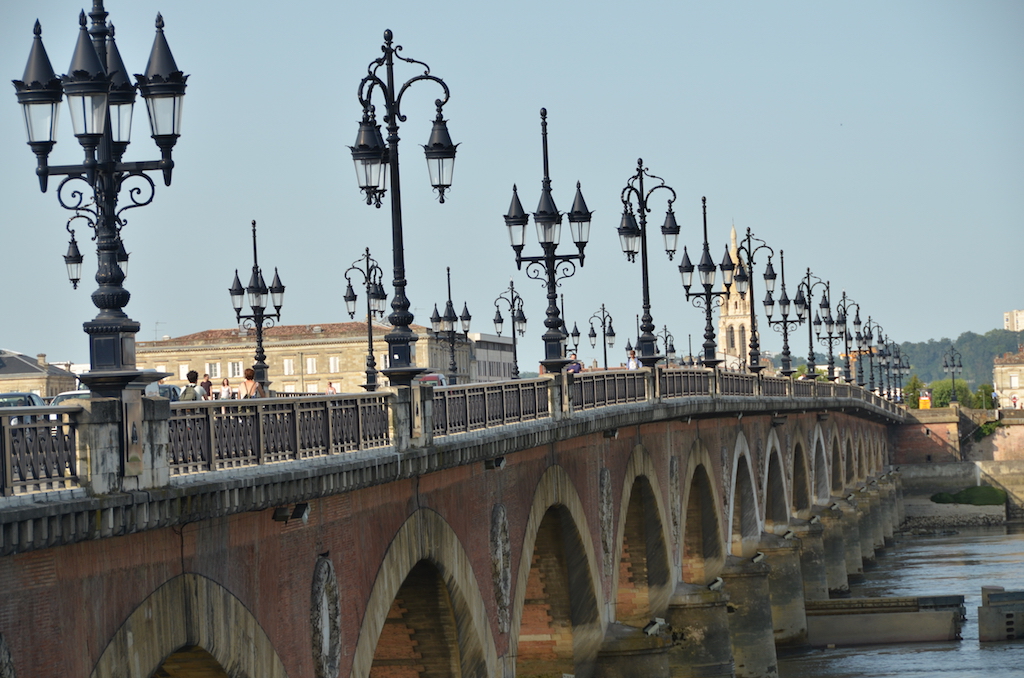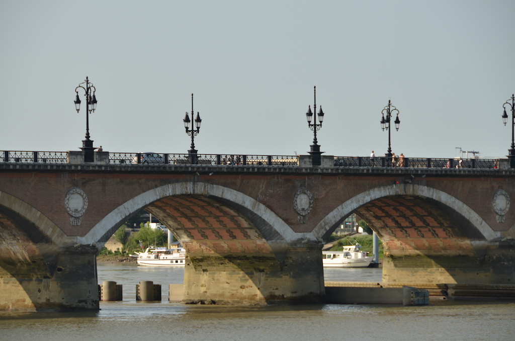 A poca distancia llegamos hasta la orilla del río Garona con su Puente de Piedra construido por orden de Napoleón y para el que necesitaron una importante obra de ingeniería para levantarlo debido fundamentalmente a la fuerte corriente del río Garona. Consta de 17 arcos, uno por cada letra de su nombre (Napoleón Bonaparte)