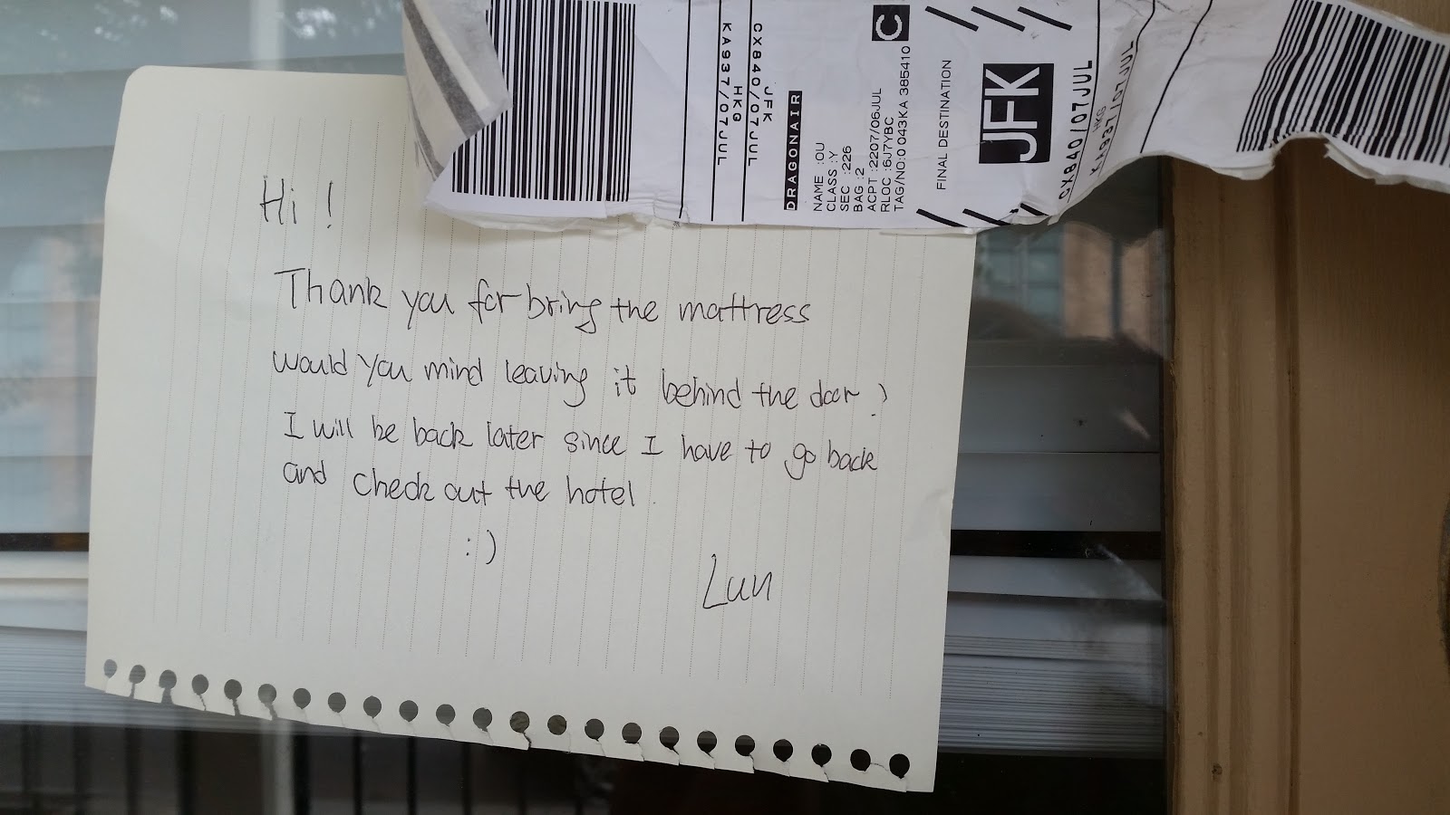 Tenemos vecinos nuevos en el piso de abajo, desde que se marcharon los de arriba hace ya más de una semana, estábamos solos en nuestra parte del edificio, y esta mañana se oía cómo llegaban a dejar cosas, además he encontrado este cartel pegado en la puerta…..