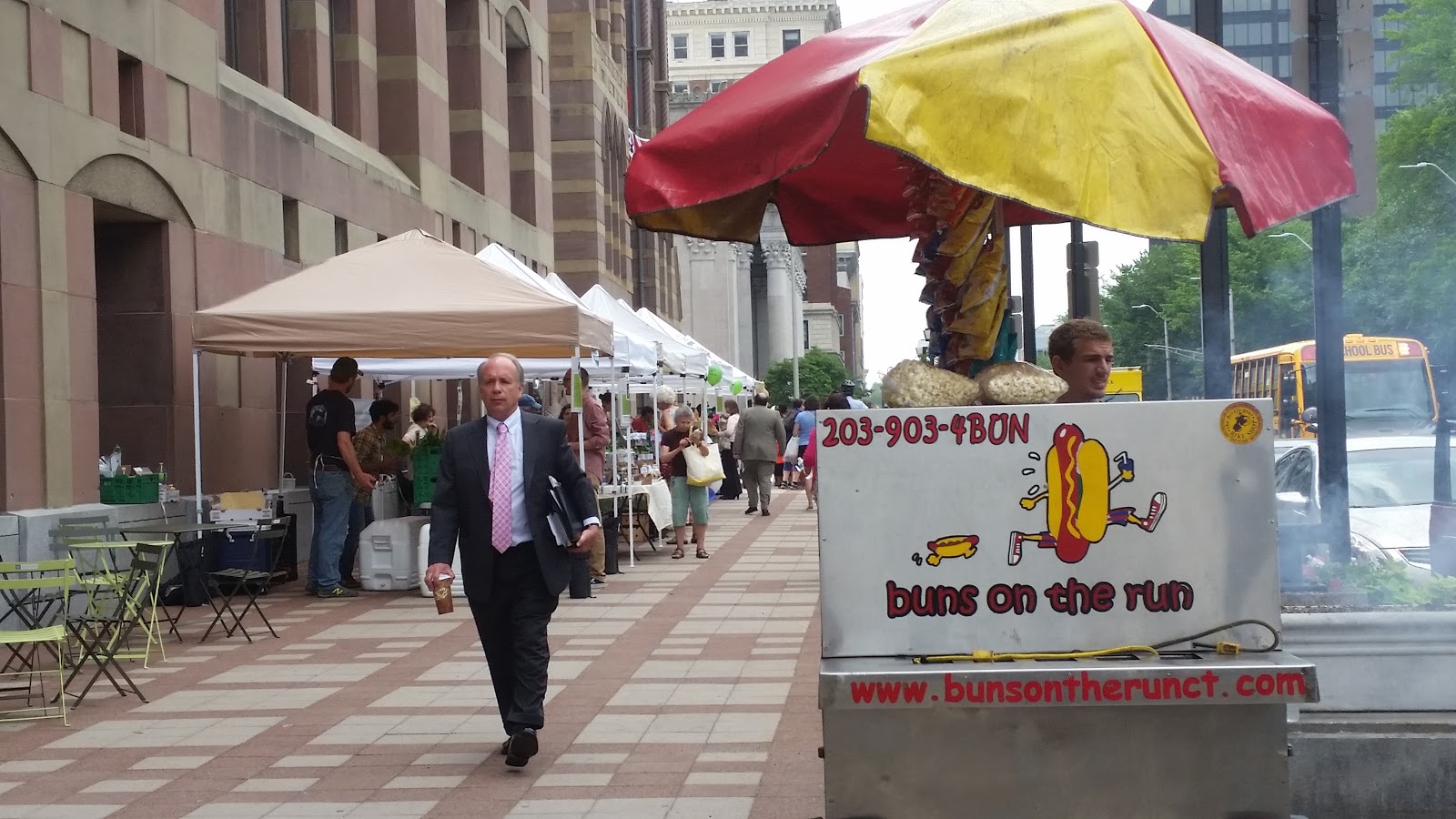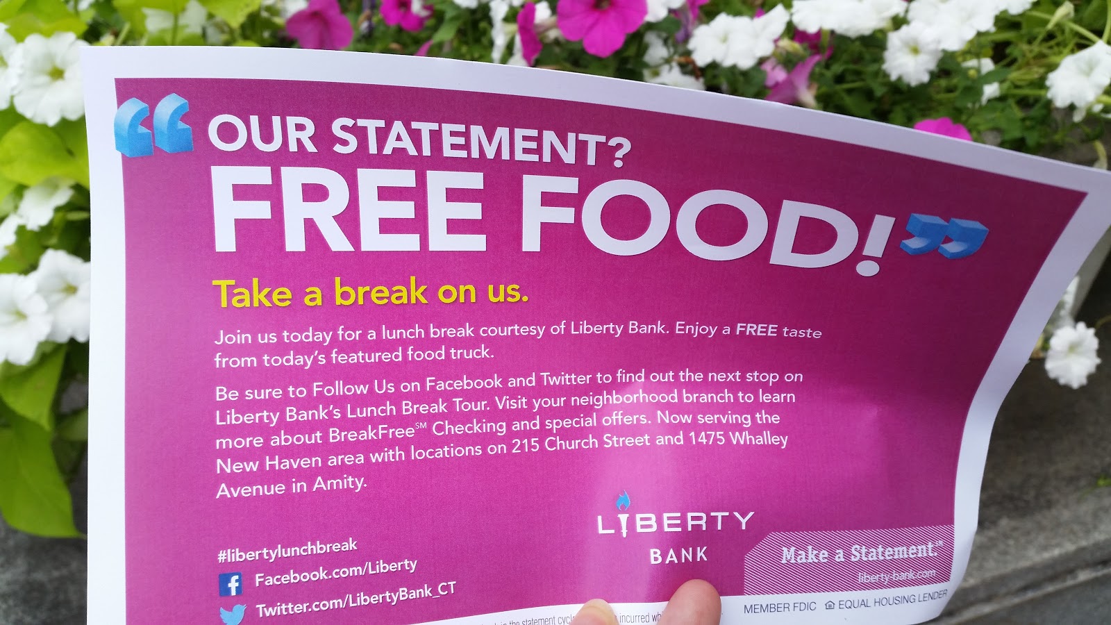 Hoy miércoles era día de Farmer’s market en el dowtown de New Haven, me he acercado a comprar pan para la comida y hoy estaban regalando unos vales para comida gratis en el food truck del restaurante Caseus por cortesía de Liberty Bank. Me ha parecido una buena iniciativa, mucha gente de las oficinas de edificios cercanos sale a comer a esas horas y en un momento se ha formado una fila enorme!!!!