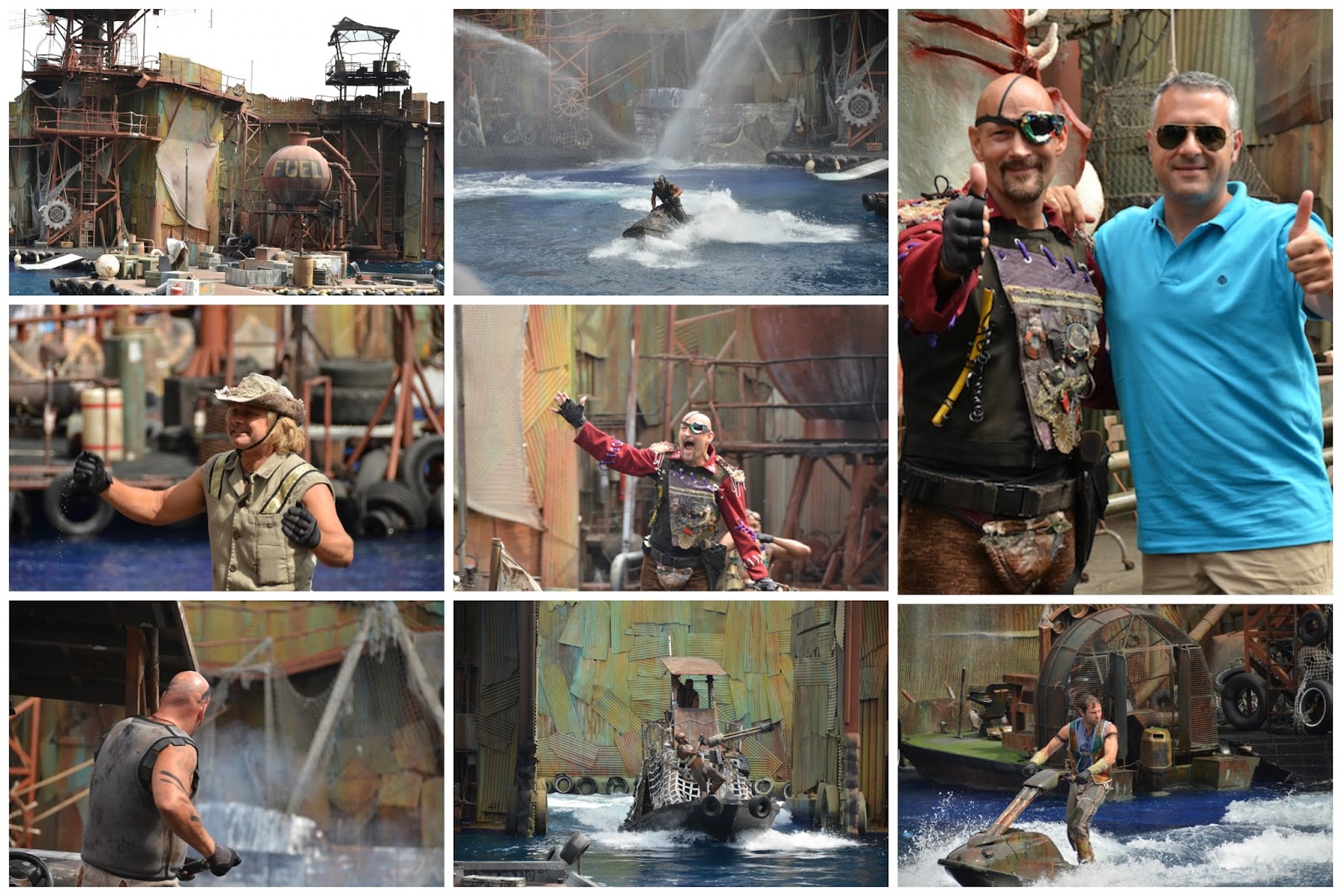 La primera atracción que visitamos es Water World, parece ser que no fue una buena película, pero el espectáculo en directo es impresionante, con efectos que incluyen fuego, agua y una acción que te hace casi partícipe de la aventura.