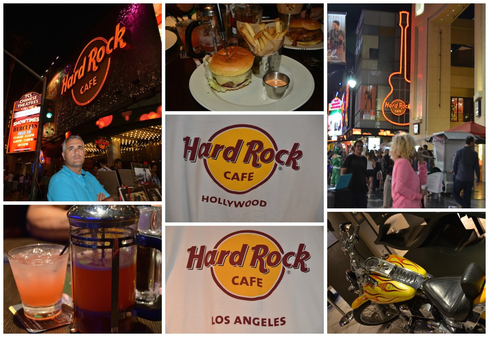 Para nuestra última noche en Los Ángeles y también nuestra última noche en esta aventura de tres semanas por estados Unidos, nos vamos a cenar al Hard Rock Cafe de la ciudad, en pleno Paseo de la Fama, en el 6801 Hollywood Blvd. Pedimos unas ricas hamburguesas y disfrutamos un buen rato de su decoración y su buena música.