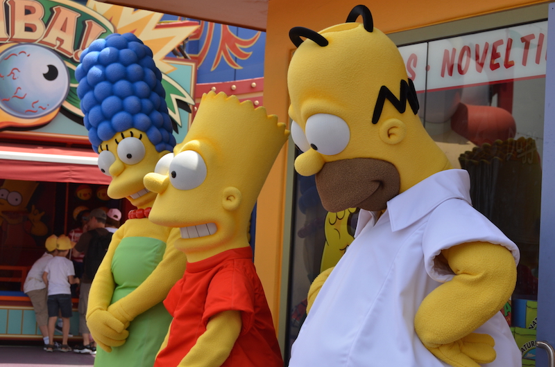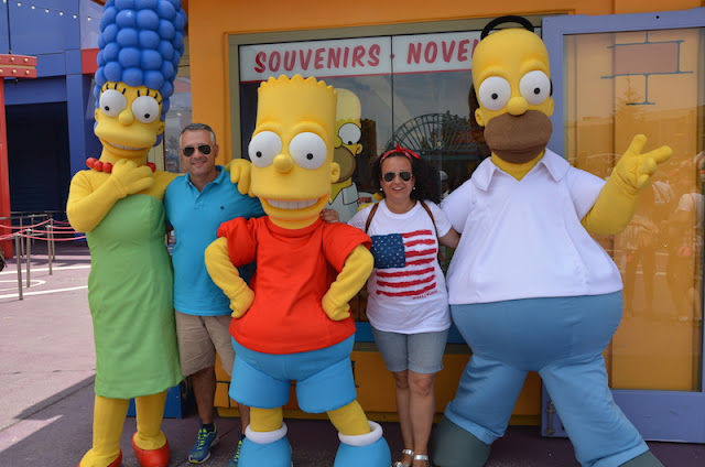 Uno de los momentos más divertidos fue en la atracción de los Simpsons, donde esperamos para hacernos una foto con toda la familia.