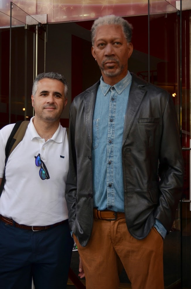 Hacemos el check in en el hotel Hilton Times Square, que se encuetra en la 42 St, la verdad es que mejor situado imposible, tuvimos mucha suerte de que saliese una oferta para esa noche. Justo al lado del hotel se encuentra el famoso museo Madame Tussauds, en cuya puerta se encontraba el actor Morgan Freeman.