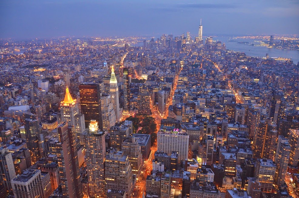 Y ya por fin llegamos al Empire State!!! Sorprendentemente apenas tenemos que esperar para acceder a los ascensores que nos llevan hasta el piso 86, desde el cual las vistas son espectaculares. Subimos cuando aún era de día y fuimos viendo como el sol se escondía en Manhattan, como poco a poco las luces de cada uno de los edificios se iban encendiendo, dando lugar a una imagen única que no te cansas de mirar y de fotografiar.