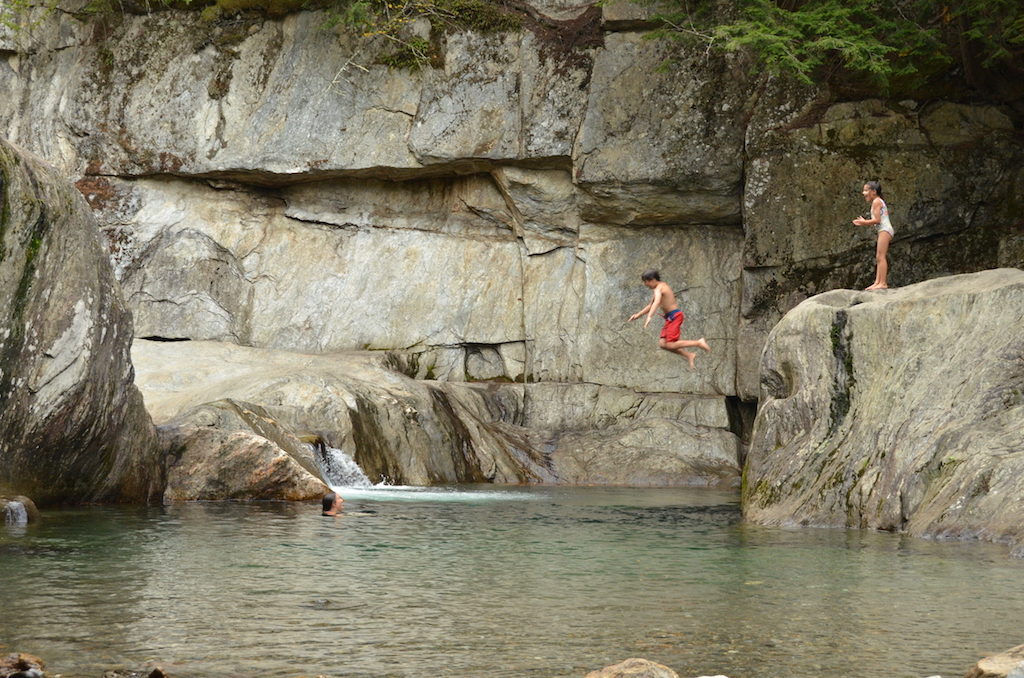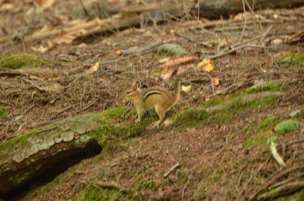 Continuando por la carretera paramos para ver las Fall Warren. Hay que caminar un poco por un espeso bosque y llegas hasta una zona del río que hace una pequeña cascada entre las piedras. Es un lugar fantástico para darse un baño, algunos lugareños lo estaban aprovechando bien. Por el camino podemos ver una pequeña ardilla muy diferente a la especie que habíamos visto ahora. Es bastante complicado ver animales en libertad, teníamos ganas de ver un moose típico de por aquí, pero nos conformamos con una pareja de cervatillos que ha cruzado la carretera a nuestro paso.