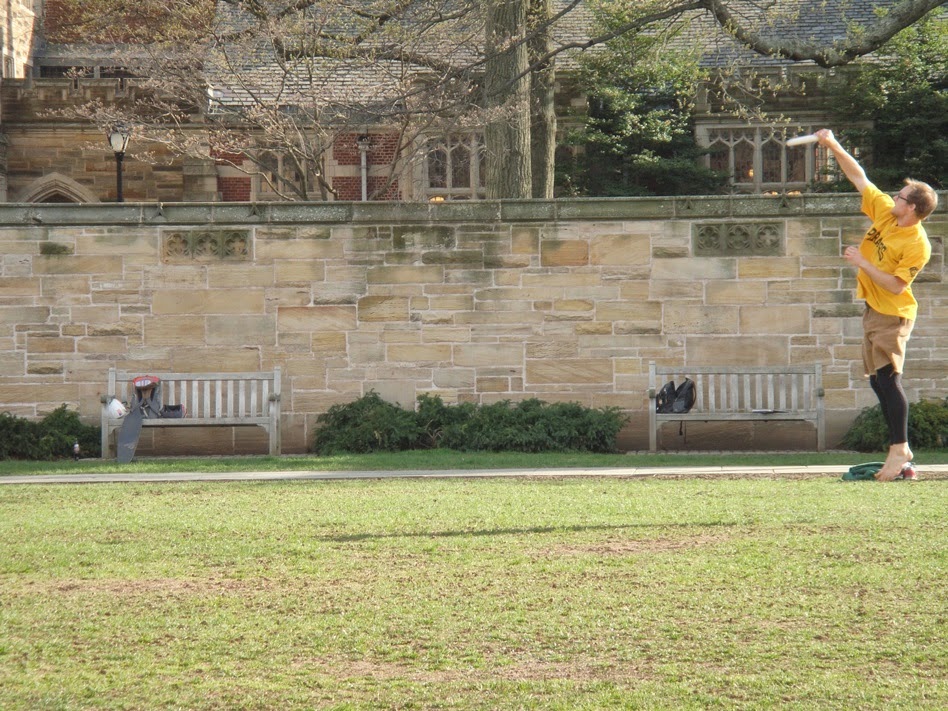 Alguno se pone allí a estudiar acompañado de su balón de fútbol americano para hacer algún descanso, jeje, otros prefieren darle al frisbee, vaya control que tienen!!!