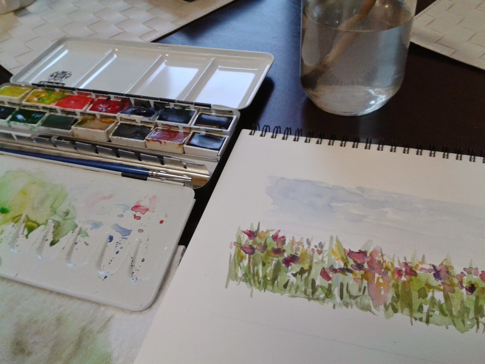 Al llegar a casa me he preparado un té Chai Latte y me he sentado a pintar con mis acuarelas. La verdad es que poco a poco el apartamento está cada vez más acogedor, incluso hemos comprado una planta que le da mucha alegría y una pequeña maceta con tulipanes que están empezando a salir.