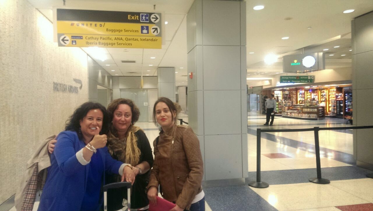 Con bastante tiempo hemos llegado al aeropuerto. Con el Air Train nos hemos movido de una terminal a otra, ellas llegaban a la T7, así que cuando hemos visto que el avión en el que venían ya había tomado tierra, nos hemos ido a la puerta por donde debían salir a esperar. Con una aplicación que tiene Diego en su teléfono hemos podido hacer el seguimiento del vuelo