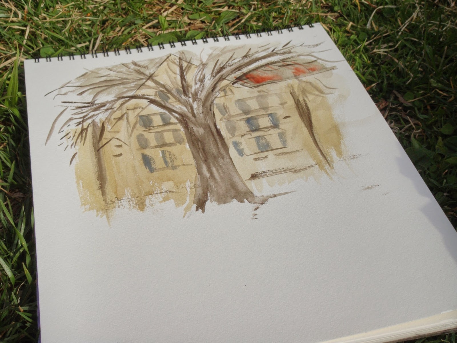 Aunque corría una brisa fresca, al sol se estaba muy bien, así que he aprovechado para ir a sentarme un rato a mi rincón favorito, «el green sterling», que ya lo hemos bautizado así, a pintar un rato y a disfrutar del ambiente. Poco a poco, los árboles van perdiendo ese aspecto invernal y parece que las yemas están empezando a salir,según nos cuentan ha sido un invierno demasiado duro y cuesta recuperarse de ello.