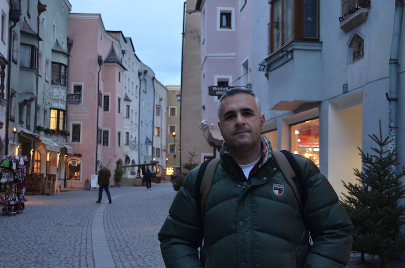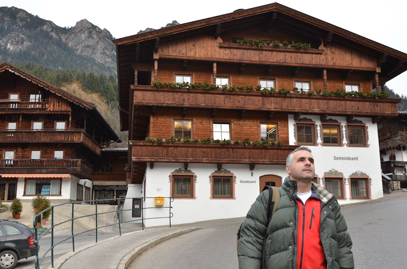 Para llegar a nuestro siguiente destino el GPS nos manda por una carretera, por llamarlo de alguna manera, de montaña, en algunos tramos cruzábamos los dedos para que no viniese ningún vehículo de frente, menos mal que tuvimos suerte y nadie más pensó en circular por allí en ese momento. Era más bien un camino rural que atravesaba incluso alguna granja, la verdad es que el paisaje era precioso, pero no podíamos disfrutarlo mucho ya que había que ir muy pendiente del trazado y de los baches que íbamos encontrando, al menos pasamos un rato divertido insultando a nuestro GPS. Después nos dimos cuenta que era una ruta alternativa, pero había una carretera mejor que llevaba hasta Alpbach, reconocido en muchos lugares como uno de los pueblos más bonitos de Austria, y razón no les falta. En verano sus balcones lucen espléndidos llenos de flores, en diciembre no hay flores, pero el paisaje es igualmente espectacular. Se encuentra en la región de Alpbachtal, dentro de los Alpes de Kitzbühel y cuenta con una estación de esquí dentro del mismo pueblo, vamos que puedes salir con los esquis puestos desde casa.